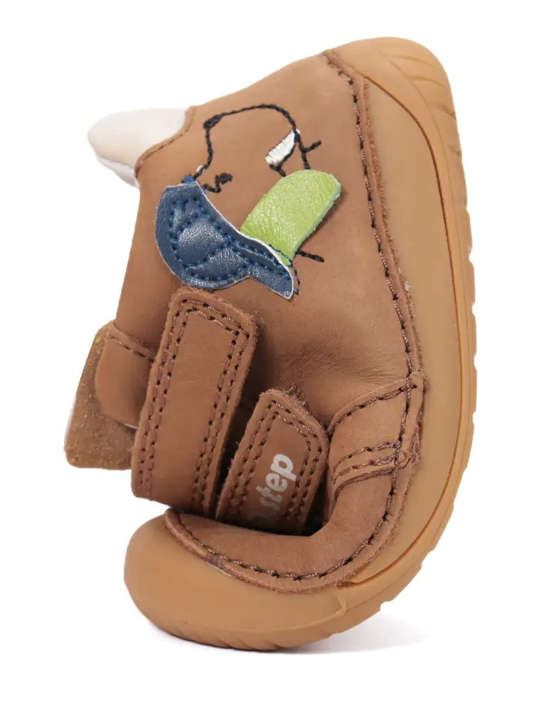Zarówno z zewnątrz, jak i w środku, wykonane są z miękkiej skóry, co zapewnia komfort i odpowiednią wentylację dla stóp. Ich elastyczna, miękka podeszwa zapewnia swobodę ruchów. Zapinane za pomocą dwóch rzepów, co jest praktyczne oraz szybkie, a dodatkowo umożliwia dziecku samodzielne zakładanie. Buty posiadają szersze czubki, co daje więcej miejsca z przodu na paluszki, przez co mogą one zachować naturalne ułożenie.