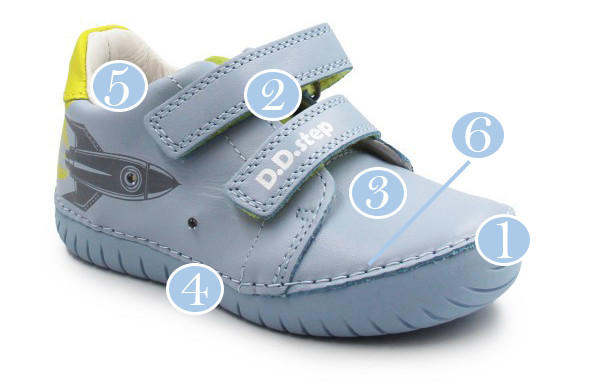Zarówno z zewnątrz, jak i w środku, wykonane są z miękkiej skóry, co zapewnia komfort i odpowiednią wentylację dla stóp. Ich elastyczna, miękka podeszwa zapewnia swobodę ruchów. Usztywniony zapiętek delikatnie stabilizuje stopę, jednocześnie pozostawiając dużo miejsca na palce. Zapinane za pomocą dwóch rzepów, co jest praktyczne oraz szybkie, a dodatkowo umożliwia dziecku samodzielne zakładanie.