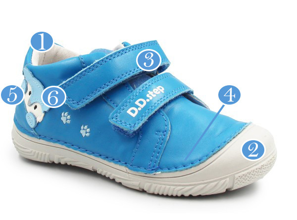 Zarówno z zewnątrz, jak i w środku, wykonane są z miękkiej skóry, co zapewnia komfort i odpowiednią wentylację dla stóp. Ich elastyczna, miękka podeszwa zapewnia swobodę ruchów. Usztywniony zapiętek delikatnie stabilizuje stopę, jednocześnie pozostawiając dużo miejsca na palce. Zapinane za pomocą dwóch rzepów, co jest praktyczne oraz szybkie, a dodatkowo umożliwia dziecku samodzielne zakładanie.