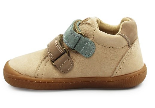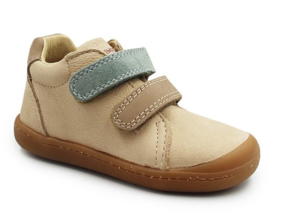 Skórzane buty dziecięce z elastyczną podeszwą, która zapewnia stopie naturalny ruch podczas poruszania. Zapinane za pomocą dwóch praktycznych rzepów. Skórzane wnętrze wypełnione przy kołnierzu miękką pianką.