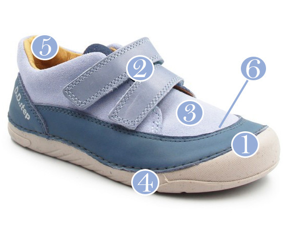 Zarówno z zewnątrz, jak i w środku, wykonane są z miękkiej skóry, co zapewnia komfort i odpowiednią wentylację dla stóp. Ich elastyczna, miękka podeszwa zapewnia swobodę ruchów. Zapiętek delikatnie stabilizuje stopę, jednocześnie pozostawiając dużo miejsca na palce. Zapinane za pomocą dwóch rzepów, co jest praktyczne oraz szybkie, a dodatkowo umożliwia dziecku samodzielne zakładanie.