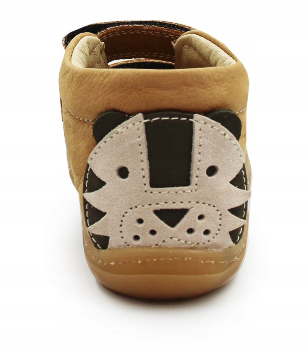 Buciki dziecięce z ozdobnym elementem w okolicach zapiętka. Zapinane za pomocą praktycznych rzepów. Posiadają elastyczną podeszwę, która nie ogranicza ruchomości stopy podczas chodzenia. Wkładka zapewnia odpowiednią wentylację stopy.