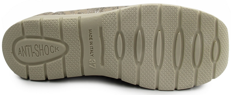 Specjalnie zaprojektowana podeszwa ANTI-SHOCK wspiera komfort użytkowania obuwia podczas codziennego poruszania się. Jej lekka i sprężysta konstrukcja dobrze współpracuje z naturalnym ruchem stopy, a dzięki żłobieniom na spodzie zapewnia dobrą przyczepność do podłoża. To idealne rozwiązanie dla osób ceniących sobie stabilne i praktyczne obuwie do codziennego użytku.
