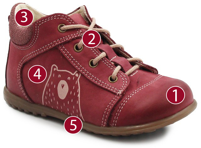 ✅ Usztywnienie tylnej części bucika sięga poniżej kostki, buty muszą pozwalać dziecku siadać na piętach