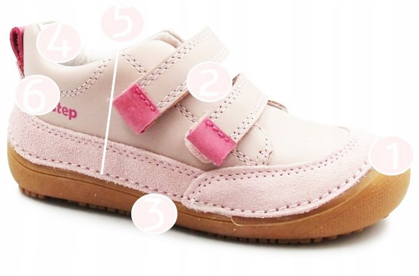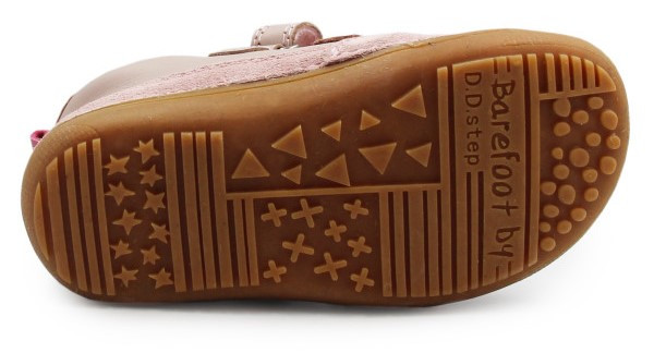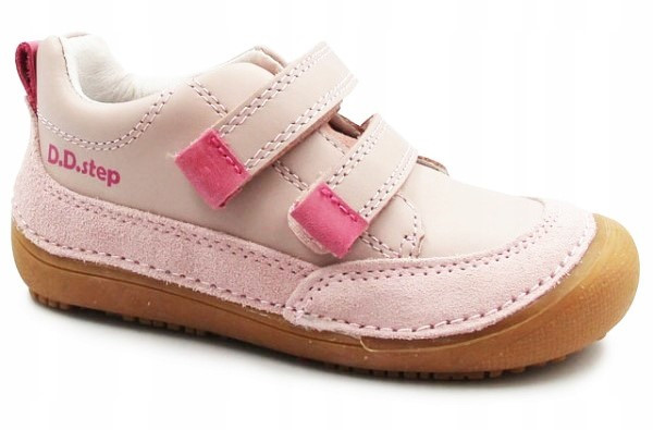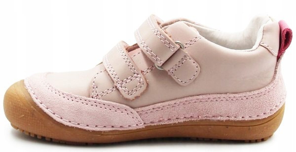 Wiosenne buty dla dziewczynki w różowej kolorystce. Wykonane z miękkiej skóry nubukowej. Wyposażone w podeszwę Barefoot, którą cechuje wysoka elastyczność oraz uczucie chodzenia "na boso", zapewnia stopie maksymalne czucie powierzchni. Wkładka o zerowym spadku, co oznacza że nie posiada różnicy między palcami, a piętą.