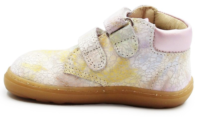 Dziewczęce buty na wiosnę z elastyczną podeszwą, która zapewnia swobodę ruchu stopy. Jest szersza w okolicy palców, dzięki czemu palce mogą swobodnie się poruszać. Zapinane za pomocą dwóch praktycznych rzepów.