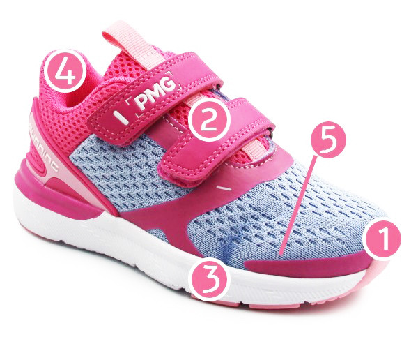 Miękka piankowa podeszwa amortyzuje wstrząsy podłoża, na jakie narażona jest stopa podczas chodu. Co ulepsza komfort noszenia oraz zmniejsza uczucia zmęczenia. Punkt w okolicy pięty pełni rolę ochrony przed wstrząsami, w miejscu gdzie stopa jest na nie szczególnie narażona.