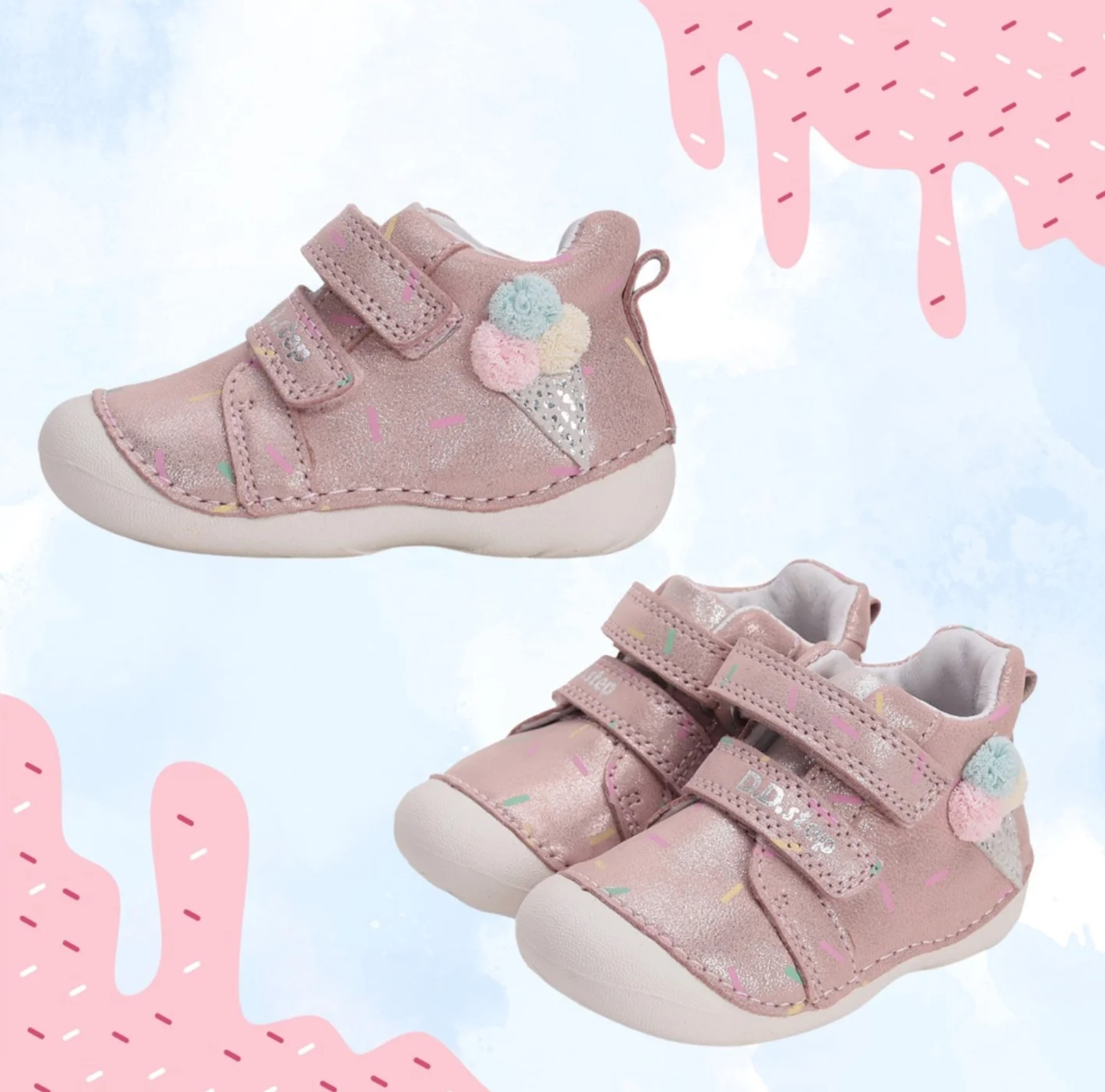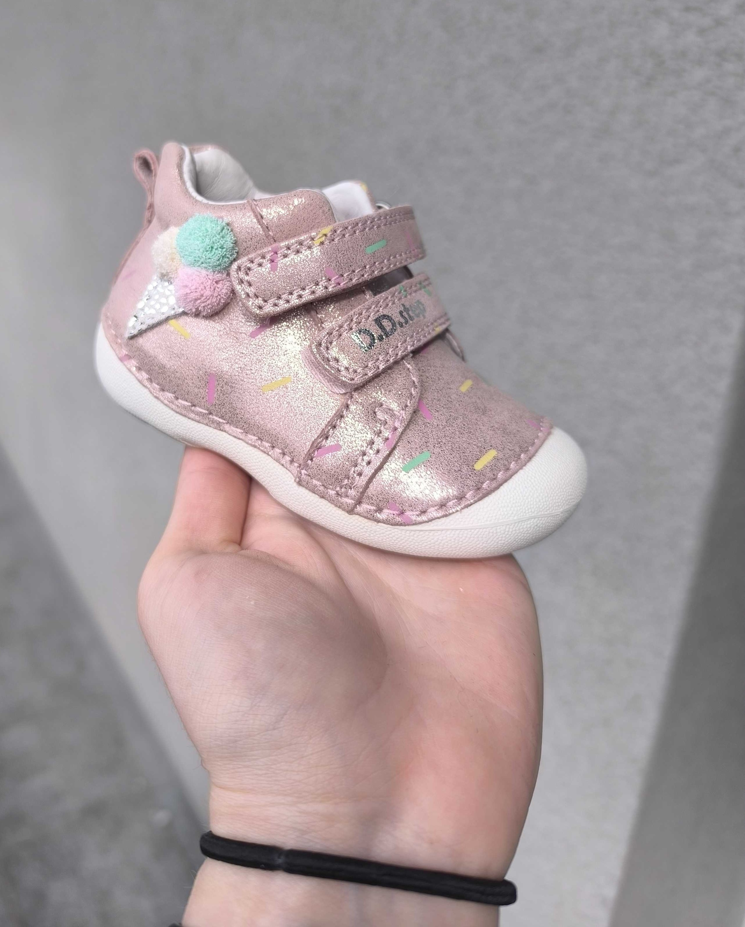 Zarówno z zewnątrz, jak i w środku, wykonane są z miękkiej skóry, co zapewnia komfort i odpowiednią wentylację dla stóp. Ich elastyczna, miękka podeszwa zapewnia swobodę ruchów. Usztywniony zapiętek delikatnie stabilizuje stopę, jednocześnie pozostawiając dużo miejsca na palce. Zapinane za pomocą dwóch rzepów, co jest praktyczne oraz szybkie, a dodatkowo umożliwia dziecku samodzielne zakładanie.