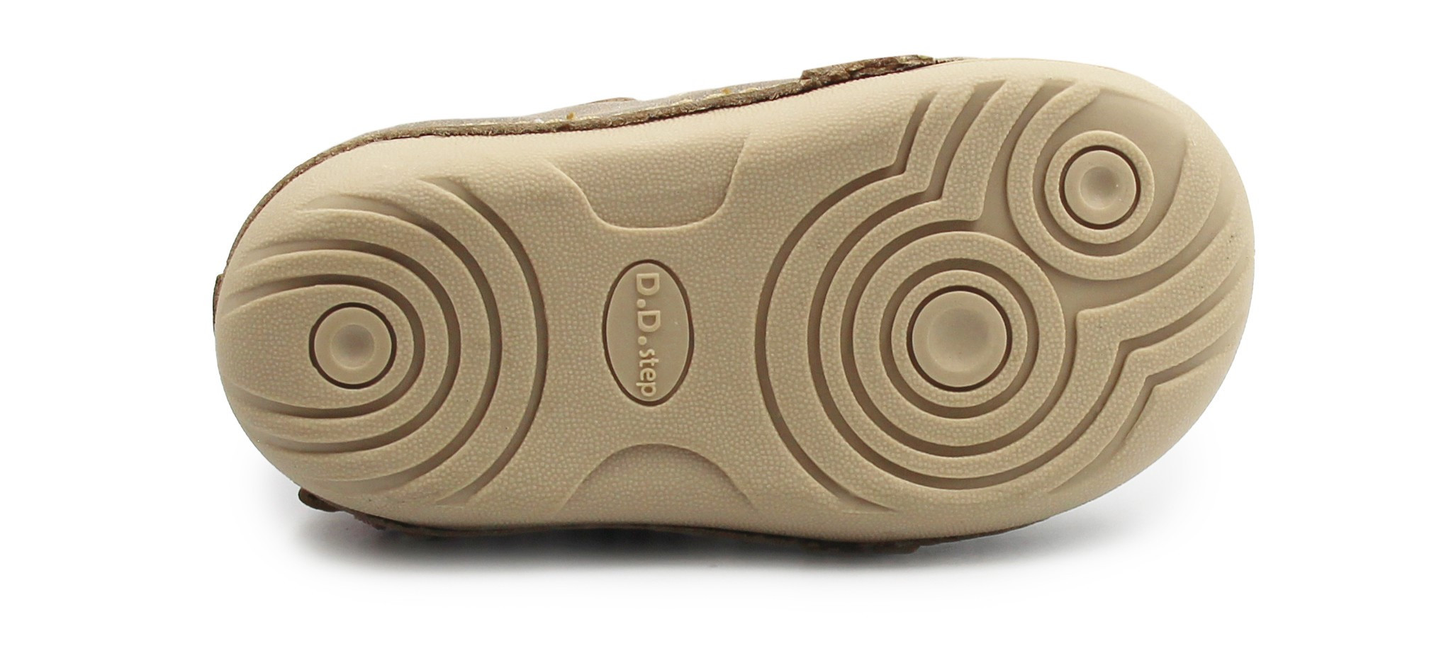 Zarówno z zewnątrz, jak i w środku, wykonane są z miękkiej skóry, co zapewnia komfort i odpowiednią wentylację dla stóp. Ich elastyczna, miękka podeszwa zapewnia swobodę ruchów. Miękki zapiętek delikatnie stabilizuje stopę, jednocześnie pozostawiając dużo miejsca na palce. Zapinane za pomocą dwóch rzepów, co jest praktyczne oraz szybkie, a dodatkowo umożliwia dziecku samodzielne zakładanie. Buty posiadają szersze czubki, co daje więcej miejsca z przodu na paluszki, przez co mogą one zachować naturalne ułożenie.