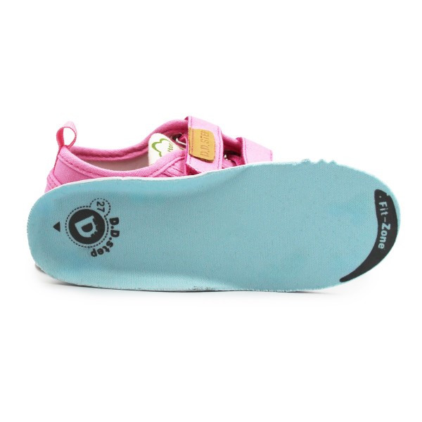Dziecięce buty tekstylne w kolorystyce różowej. To obuwie zarówno na dwór jak i jako obuwie zmienne do szkoły czy przedszkola. Regulowane za pomocą dwóch rzepów, które są szybkie, łatwe oraz praktyczne w użyciu. Wkładka delikatnie podpiera łuk stopy.
