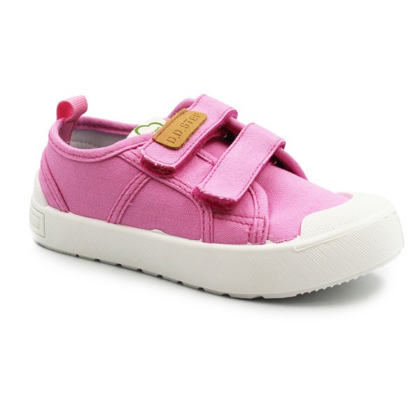 Dziecięce buty tekstylne w kolorystyce różowej. To obuwie zarówno na dwór jak i jako obuwie zmienne do szkoły czy przedszkola. Regulowane za pomocą dwóch rzepów, które są szybkie, łatwe oraz praktyczne w użyciu. Wkładka delikatnie podpiera łuk stopy.