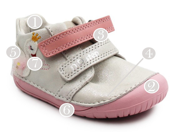 Zarówno z zewnątrz, jak i w środku, wykonane są z miękkiej skóry, co zapewnia komfort i odpowiednią wentylację dla stóp. Ich elastyczna, miękka podeszwa zapewnia swobodę ruchów. Zapinane za pomocą dwóch rzepów, co jest praktyczne oraz szybkie, a dodatkowo umożliwia dziecku samodzielne zakładanie. Buty posiadają szersze czubki, co daje więcej miejsca z przodu na paluszki, przez co mogą one zachować naturalne ułożenie.