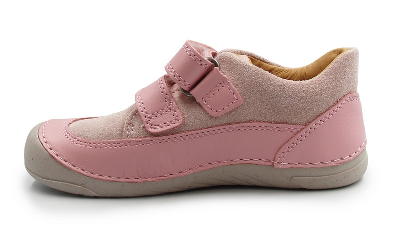 Zarówno z zewnątrz, jak i w środku, wykonane są z miękkiej skóry, co zapewnia komfort i odpowiednią wentylację dla stóp. Ich elastyczna, miękka podeszwa zapewnia swobodę ruchów. Zapiętek delikatnie stabilizuje stopę, jednocześnie pozostawiając dużo miejsca na palce. Zapinane za pomocą dwóch rzepów, co jest praktyczne oraz szybkie, a dodatkowo umożliwia dziecku samodzielne zakładanie.