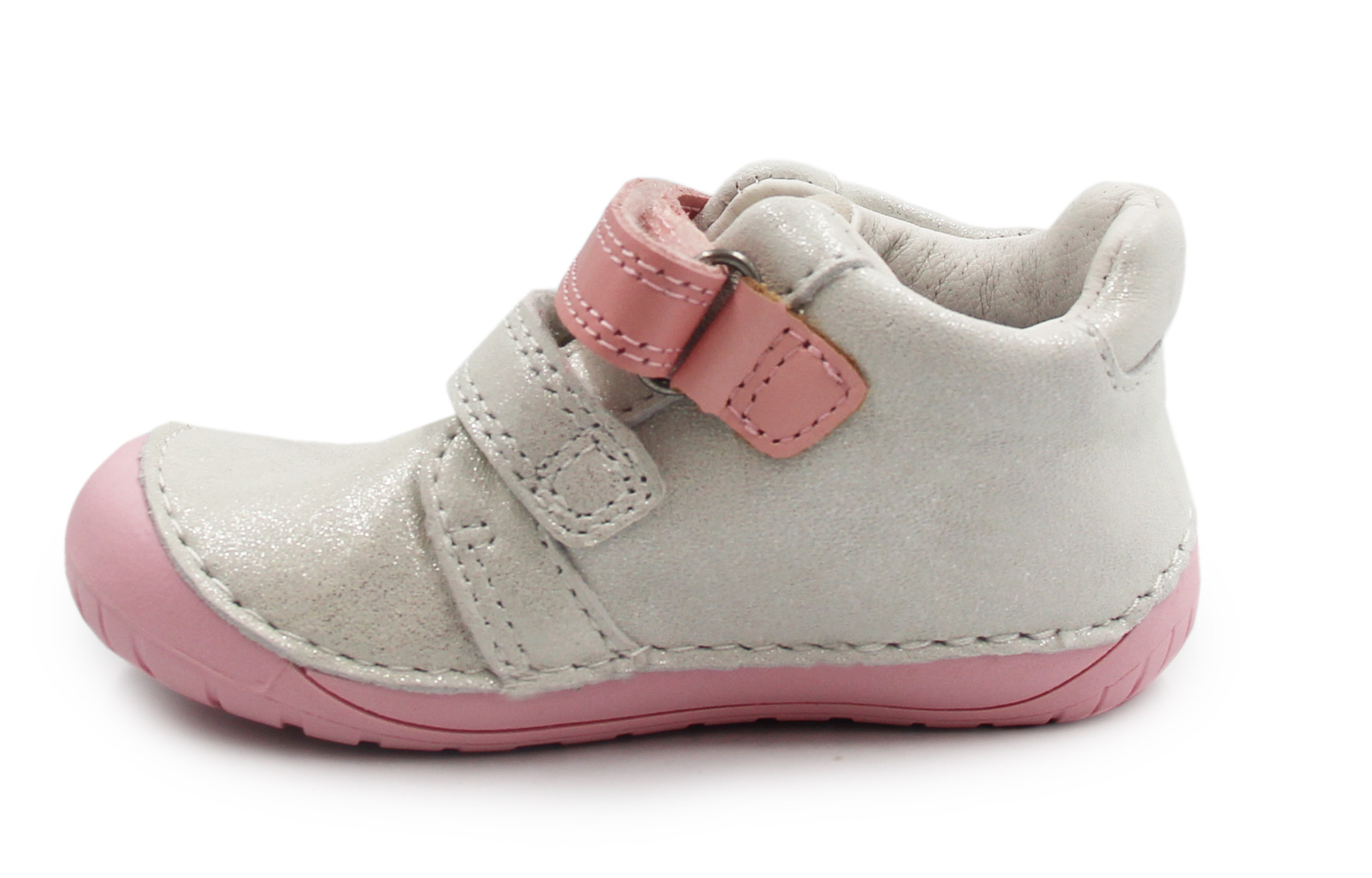 Zarówno z zewnątrz, jak i w środku, wykonane są z miękkiej skóry, co zapewnia komfort i odpowiednią wentylację dla stóp. Ich elastyczna, miękka podeszwa zapewnia swobodę ruchów. Zapinane za pomocą dwóch rzepów, co jest praktyczne oraz szybkie, a dodatkowo umożliwia dziecku samodzielne zakładanie. Buty posiadają szersze czubki, co daje więcej miejsca z przodu na paluszki, przez co mogą one zachować naturalne ułożenie.
