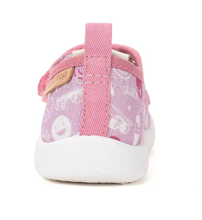 Miękkie kapcie dziewczęce wykonane w kolorystyce różowej. Wyprodukowane są z miękkich materiałów przy użyciu technologii Soft Shock oraz Fit Zone. Zapiętek jest miękki oraz lekko wzmocniony. Podeszwa ma za zadanie amortyzować wstrząsy. Zapięcie na rzep umożliwia dopasowanie do szerokości stopy dziecka. Szersze czubki pozwalają palcom na swobodne poruszanie w obuwiu.