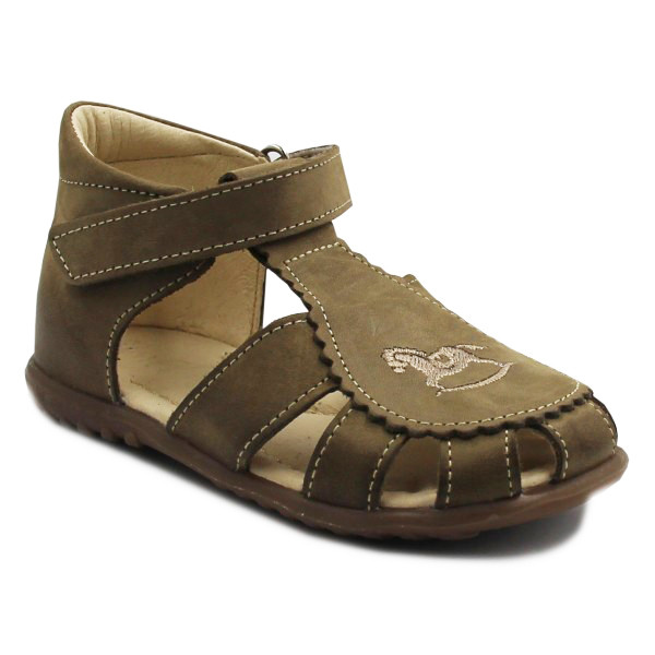 Skórzane półsandały Emel ES 1670-16 to wprost idealne buciki na lato, Lekkie i przewiewne z zapięciem na rzep, które ułatwia regulację i prawidłowe dopasowanie bucików do maleńkich stópek. Uszyte z największą starannością ze skóry naturalnej. Uroku dodaje zdobiony konik, który wykonany został precyzyjnym haftem. Sprawdzą się na co dzień, jak i od święta.