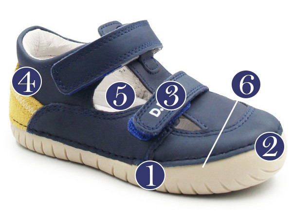 Sandały chłopięce na lato, swoją konstrukcją przypominają trampki. Pięta w sandałach oraz palce są zabudowane. Podeszwa jest elastyczna, dzięki czemu nie ogranicza ruchomości stopy podczas chodzenia. Wyposażone w dwa zapięcia na rzep, które dają możliwość na dokładniejsze dopasowanie obuwia do stopy. Wkładka jest wyjmowana i skórzana zarówno jak wnętrze.