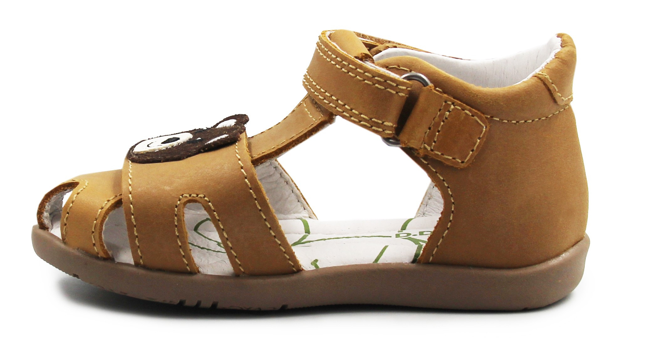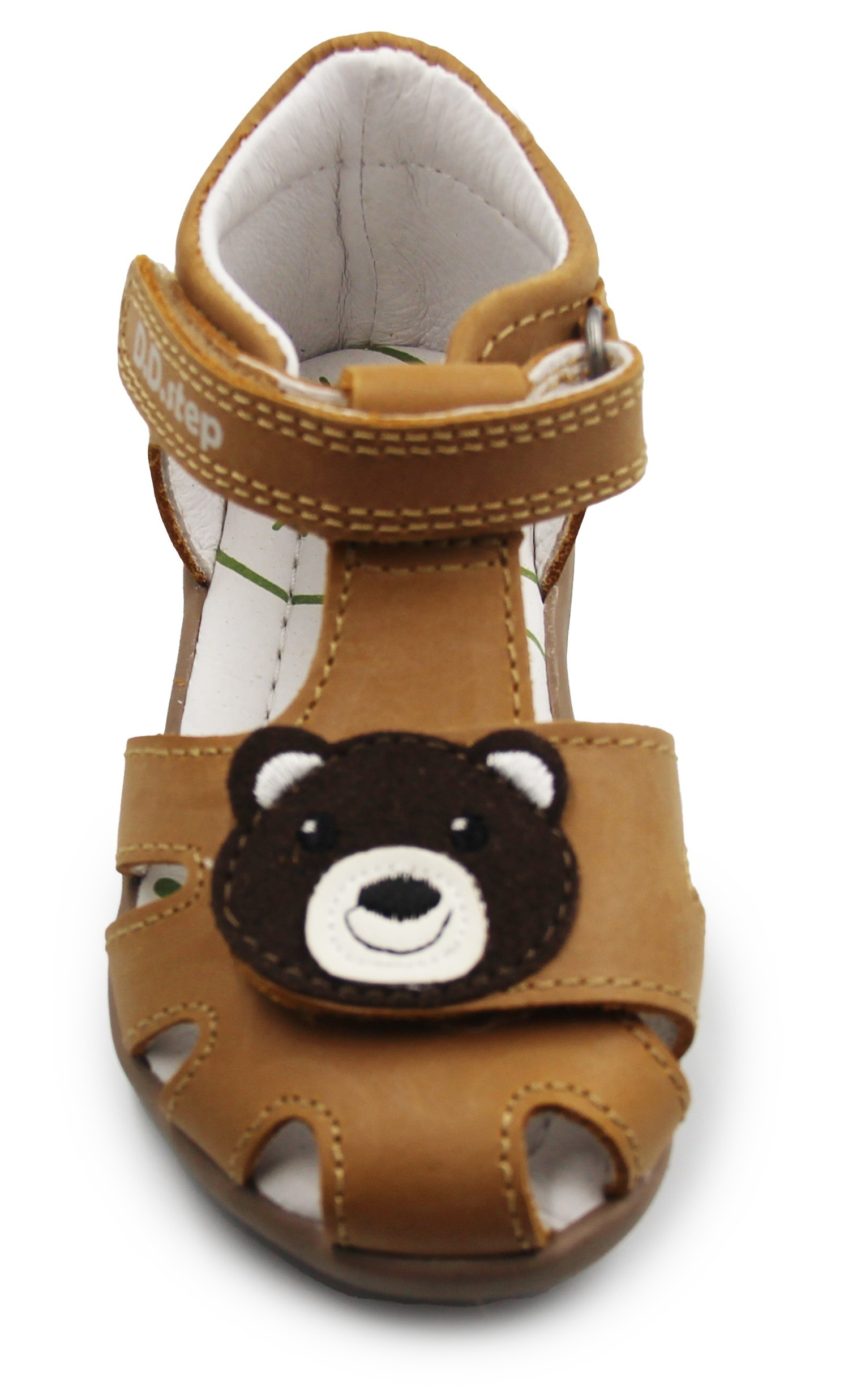 Sandałki dziecięce z uroczym misiem. Wykonane z wysokiej jakości skóry naturalnej, która pozwala skórze oddychać. Podeszwa posiada właściwości amortyzujące wstrząsy podłoża na jakie narażona jest stopa podczas chodzenia. System zapinania na rzepy umożliwia proste i szybkie dostosowanie obuwia do stopy dziecka.