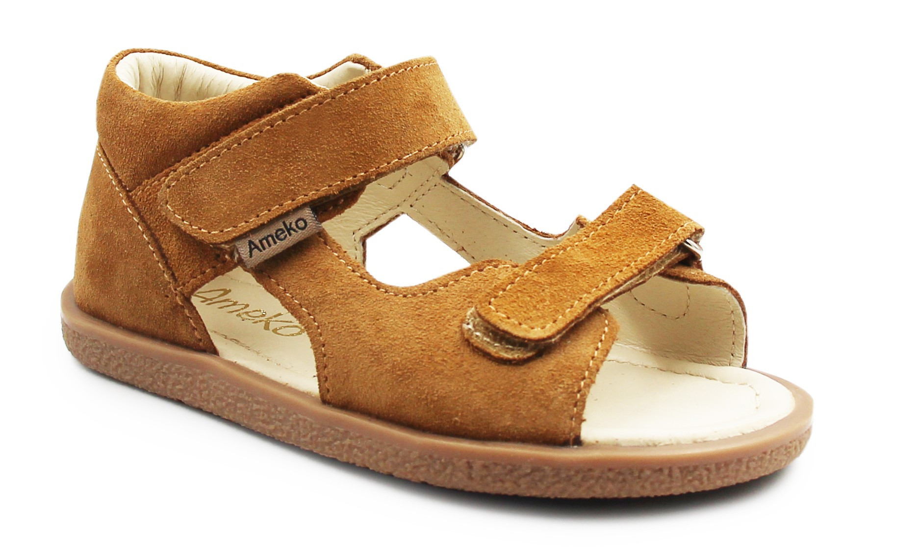 Sandałki dziecięce zapinane za pomocą dwóch rzepów. Wnętrze wypełnione jest miękką pianką, która poprawia komfort podczas noszenia. Wykonane ze skóry welurowej oraz skóry naturalnej.
