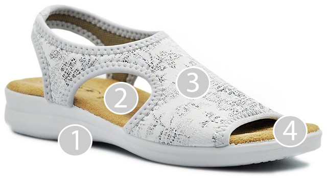1. Sandały zostały opracowane dla kompleksowej wygody stopy, z miękką podeszwą, która amortyzuje kontakt stopy z podłożem oraz w celu uniknięcia szkodliwego wpływu na stawy. Podeszwa wykonana została z materiałów lekkich, elastycznych i ekologicznych, umożliwia doskonałą przyczepność i stabilność stopy.
