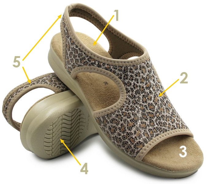Te sandały to połączenie praktyczności i elegancji. Ich subtelny, beżowy kolor z delikatnym, ozdobnym wzorem sprawia, że świetnie komponują się zarówno z codziennymi, jak i bardziej formalnymi stylizacjami. Cholewka została wykonana z miękkiego, elastycznego materiału, który dopasowuje się do stopy i zapewnia doskonałą cyrkulację powietrza – idealną na ciepłe, letnie dni.
