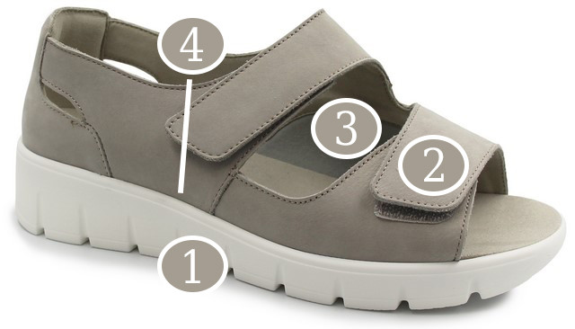 Sandały zostały wykonane z miękkich tkanin, takich jak skóra naturalna. Posiadają dwa rzepy, które są praktyczne i łatwe podczas zakładania oraz zdejmowania sandałów. W wkładce sandałów wykorzystano technologię Orthotritt, która posiada wiele właściwości mających wpływ na komfort stóp.
