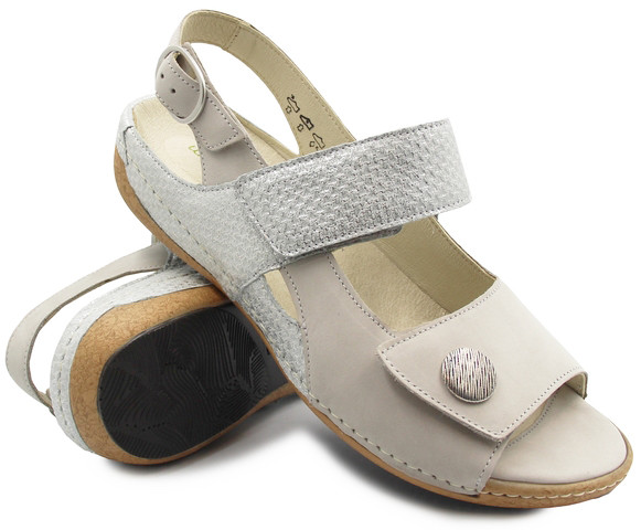 Szukasz wygodnych sandałów na lato, które łączą elegancję z maksymalnym komfortem? Model Waldlaufer 342002 (Heliett Cement Silber) to idealny wybór dla kobiet ceniących jakość, wygodę i styl. Te letnie sandały doskonale sprawdzą się zarówno podczas codziennych spacerów, jak i wakacyjnych wyjazdów. Ich klasyczna, jasna kolorystyka i eleganckie wykończenie z wysokogatunkowego nubuku i zamszu koziego sprawiają, że pasują zarówno do spodni, jak i letnich sukienek. Model zaprojektowany został z myślą o kobietach z szerszą stopą – jego tęgość H gwarantuje wygodę przez cały dzień.