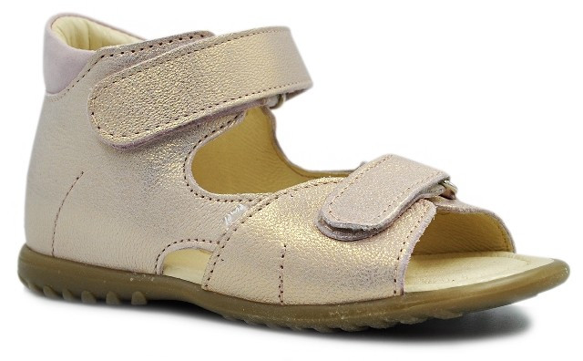 ☀️ Dziewczęce sandałki firmy Emel e 2431d-6 w kolorze mieniącego się złota z różem w zależności od padania światła.