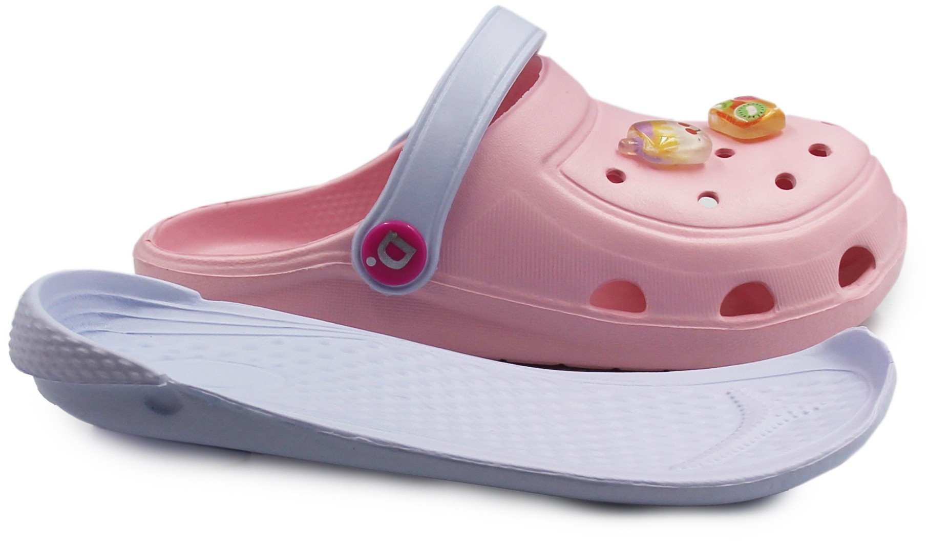Lekkie, elastyczne klapki dziecięce w różnych wzorach. Posiadają ruchomy pasek, który daje możliwość noszenia obuwia na dwa sposoby jako klapki oraz sandałki. Dzięki wyjmowanej wkładce utrzymanie ich w czystości jest łatwiejsze. Do obuwia dołączone są przypinki. Sprawdzą się podczas wakacji podczas plażowych wyjść, ich zakładanie oraz zdejmowanie jest bardzo łatwe, szybkie i praktyczne.