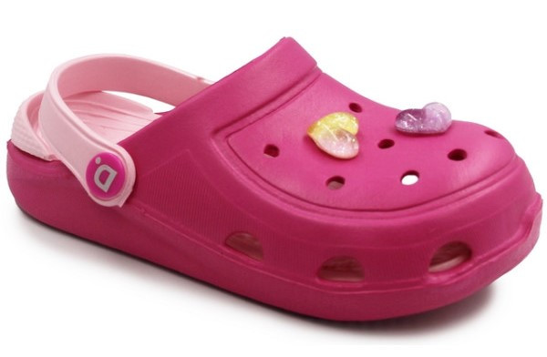 Lekkie, elastyczne klapki dziecięce w różnych wzorach. Posiadają ruchomy pasek, który daje możliwość noszenia obuwia na dwa sposoby jako klapki oraz sandałki. Dzięki wyjmowanej wkładce utrzymanie ich w czystości jest łatwiejsze. Do obuwia dołączone są przypinki. Sprawdzą się podczas wakacji podczas plażowych wyjść, ich zakładanie oraz zdejmowanie jest bardzo łatwe, szybkie i praktyczne.
