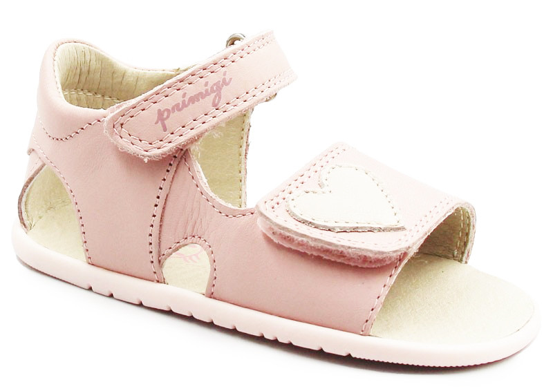Dziewczęce sandałki na lato wykonane ze skóry, z ozdobnym elementem w postaci serca. Zapinane za pomocą dwóch rzepów, co umożliwia dokładniejsze dopasowanie do indywidualnych potrzeb oraz szerokości stopy dziecka. Podeszwa jest cienka oraz elastyczna.