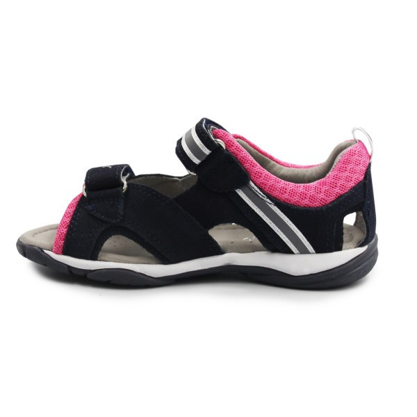 Dziewczęce sandały na lato wykonane z dokładną starannością, by zapewnić dziecku komfort podczas noszenia. Skórzane wnętrze jest wypełnione miękką pianką, by stopa mogła czuć się swobodnie. Dwa zapięcia za pomocą rzepów umożliwiają dopasowanie do indywidualnych potrzeb.