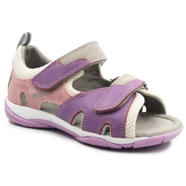 Dziewczęce sandały na lato wykonane z dokładną starannością, by zapewnić dziecku komfort podczas noszenia. Skórzane wnętrze jest wypełnione miękką pianką, by stopa mogła czuć się swobodnie. Dwa zapięcia za pomocą rzepów umożliwiają dopasowanie do indywidualnych potrzeb.