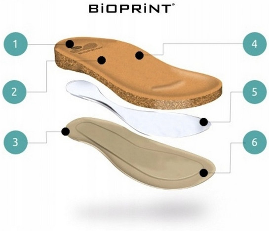 Bioprint to najnowsza technologia, opracowana przez specjalistów Scholl, zapewniająca najbardziej naturalny i wygodny sposób chodzenia. Odpowiednie zagłębienie na piętę, bardzo elastyczna podeszwa, komfortowo wyprofilowane łuki i odpowiednia wysokość obcasa pozwala utrzymać stopę w idealnej pozycji. Dzięki prawidłowo ułożonej stopie uzyskujemy równomierne rozłożenie masy ciała i utrzymanie prawidłowej postawy.
