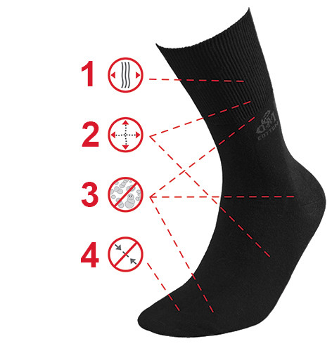 ▪️ Bezuciskowa konstrukcja skarpetek DEOMED Cotton Silver zapewnia maksymalny komfort noszenia. Brak szwów i elastyczne włókna sprawiają, że skarpety dopasowują się do stopy, nie powodując otarć ani ucisku. Dzięki temu są one polecane również dla osób z problemami krążenia oraz dla chorych na cukrzycę.