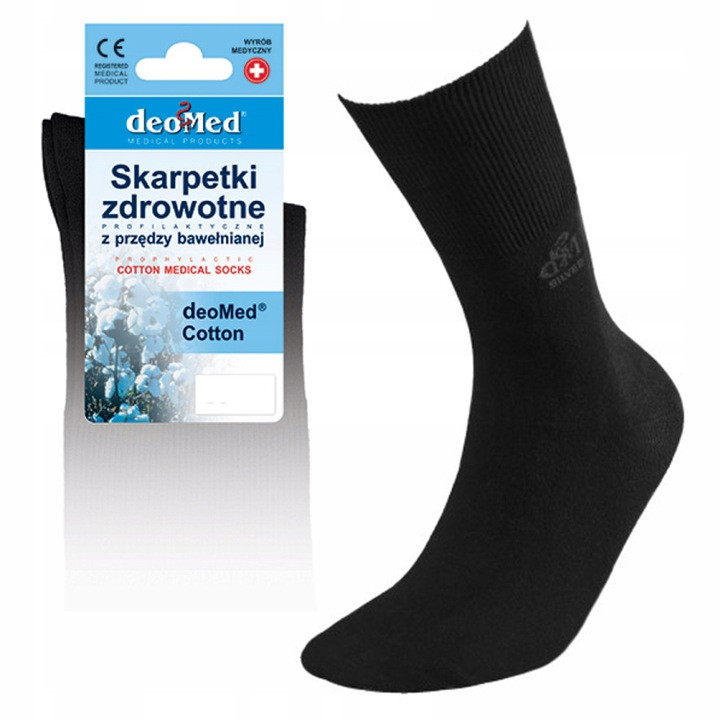 Skarpety bawełniane bezuciskowe zdrowotne czarne DeoMed Cotton Silver