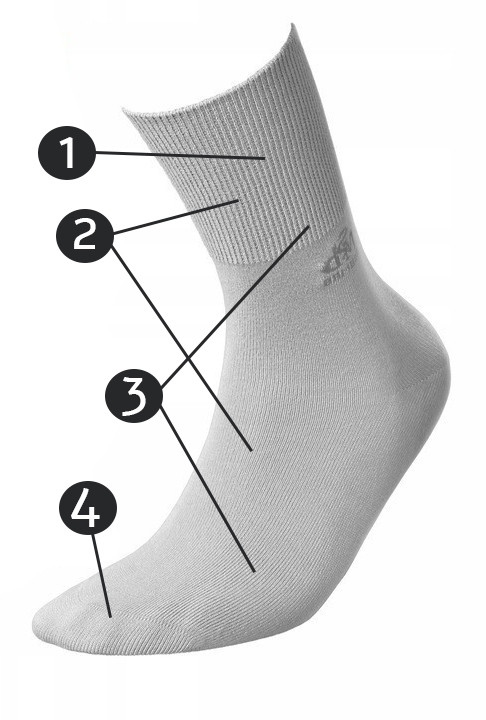 ✅ Bezuciskowy ściągacz – skarpety nie powodują ucisku, dzięki czemu są odpowiednie dla osób z wrażliwym układem krążenia, cukrzycą czy obrzękami nóg.
