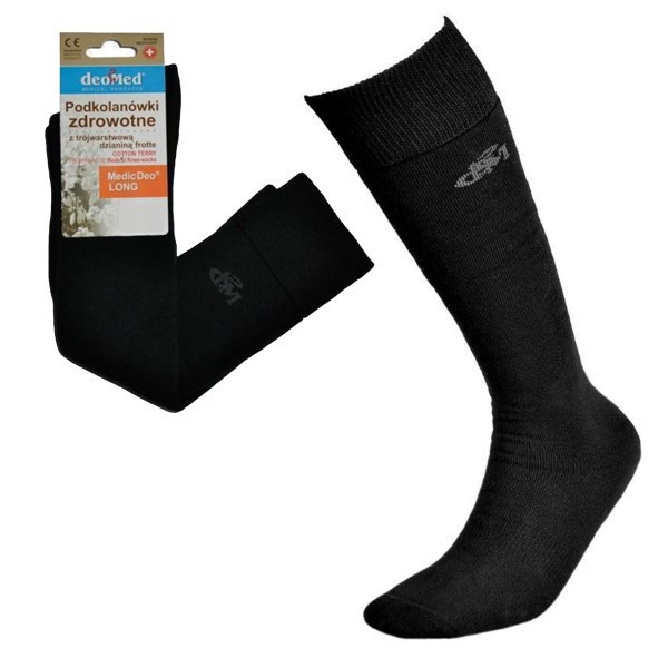Podkolanówki Zdrowotne z Trójwarstwową Dzianiną Frotte Czarne Medic Deo Long