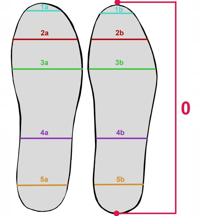 1a, 2a, 3a, 4a, 5a - szerokość w poszczególnych miejscach ( wkładka wąska)