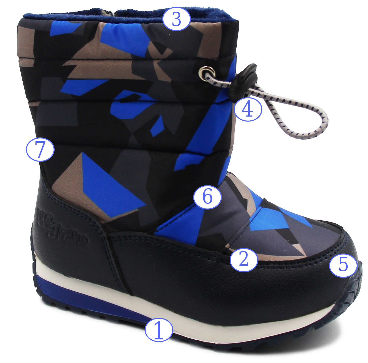 ✔️ Ocieplane śniegowce dla chłopca z modnym wzorem. Wykonane ze skóry ekologicznej oraz materiału tekstylnego. W środku pokryte są ocieplanym futerkiem, które dostarcza ciepło stopie podczas zimowych zabaw na śniegu.