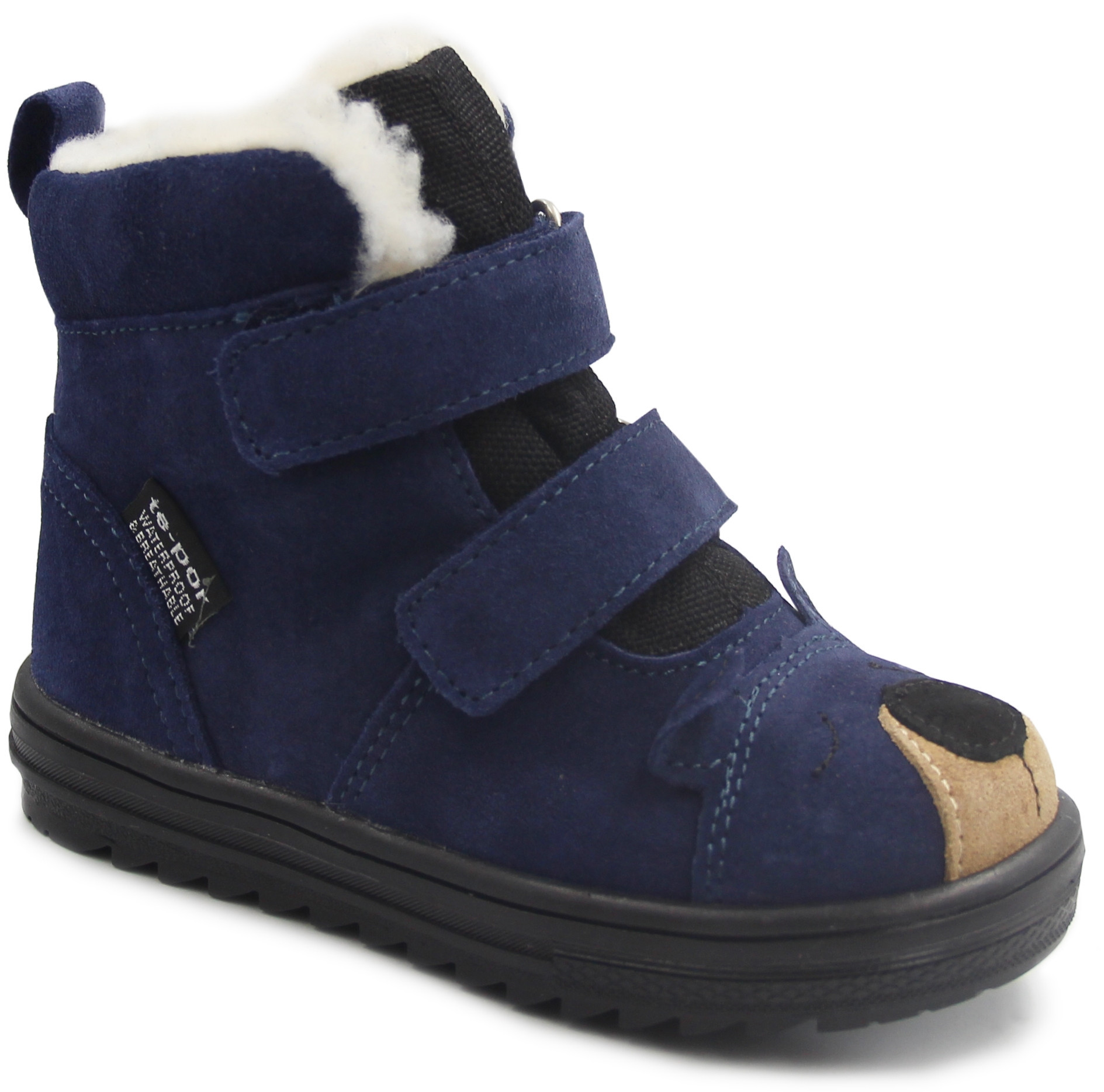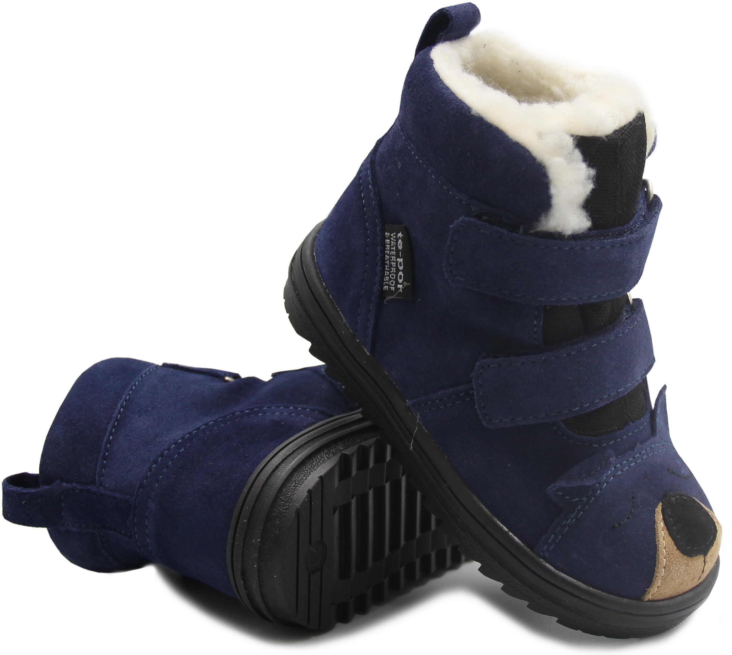 Buty wykonane z wysokiej jakości naturalnej skóry welurowej. Na czubkach posiadają dodatkowy element ozdobny, który urozmaica ich wygląd. Wewnątrz są wyposażone w membranę, która posiada właściwości sprzyjające podczas zimowych dni. Wkładka butów posiada warstwę termoizolacyjną, która ma za zadanie ogrzewać stopy dziecka.