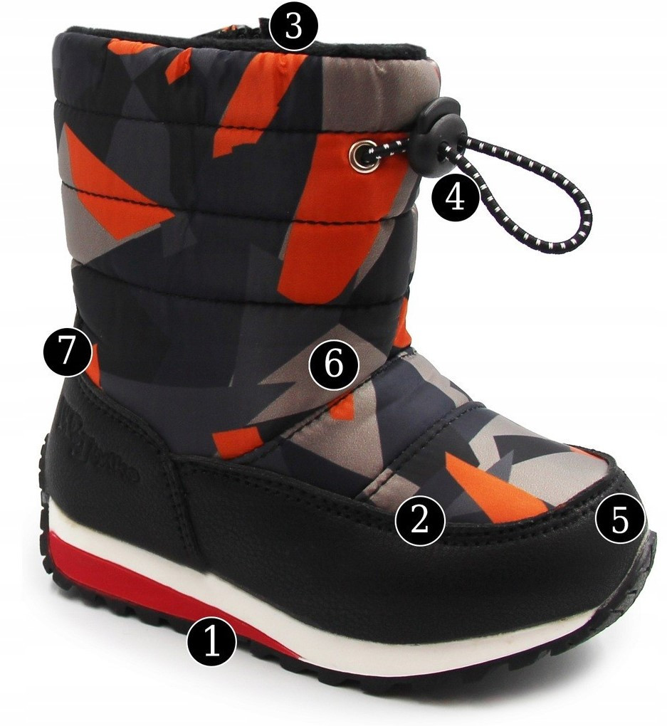 ✔️ Ocieplane śniegowce dla chłopca z modnym wzorem. Wykonane ze skóry ekologicznej oraz materiału tekstylnego. W środku pokryte są ocieplanym futerkiem, które dostarcza ciepło podczas zimowych zabaw na śniegu.