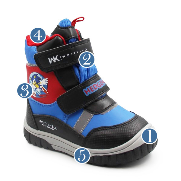 Chłopięce buty na zimę, wewnątrz otulone miękkim materiałem który ogrzewa stopę podczas chłodniejszych temperatur. Zapinane za pomocą dwóch rzepów, które są łatwe, szybkie oraz praktyczne. Dodatkowo buty zostały wyposażone w ozdobny element postaci Sony.