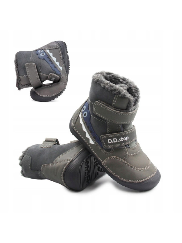 Buty Chłopięce Ocieplane Na Zimę z Krokodylem Barefoot D.D.STEP W063-52415AM Dark Grey