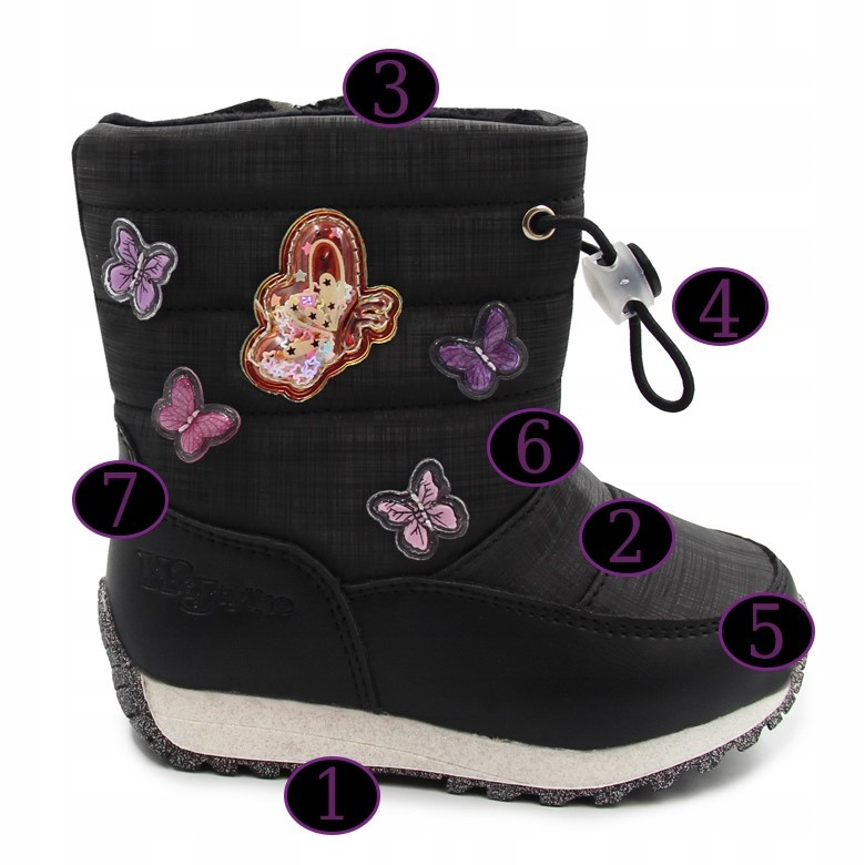 Ocieplane Śniegowce dziewczęce na suwak Wojtyłko 2z24133 czarne z dodatkowymi motylkami