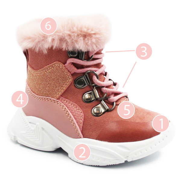 Ocieplane wnętrze oraz wkładka mięciutkim materiałem, który poprawia komfort podczas noszenia obuwia. Zapinane za pomocą suwaka, który jest szybki oraz praktyczny, daje on możliwość samodzielnego zakładania przez dziecko. Przy produkcji użyto miękkich materiałów. Podeszwa wykonana jest z wysokogatunkowego tworzywa, lekka oraz elastyczna.