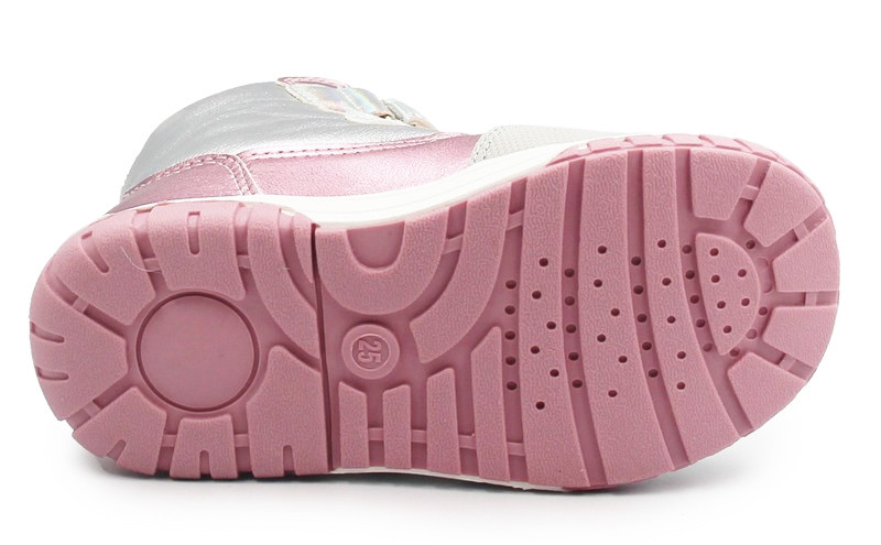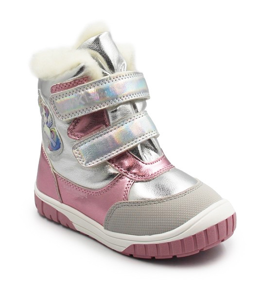 Wygoda i bajkowy wygląd podczas zimowych spacerów. Połyskujące, srebrno-różowe wykończenie oraz urocza naszywka z jednorożcem sprawią, że każda dziewczynka poczuje się w nich wyjątkowo. Wnętrze buta oraz wkładka zostały wyłożone gęstym, miękkim futerkiem, które gwarantuje komfort termiczny.