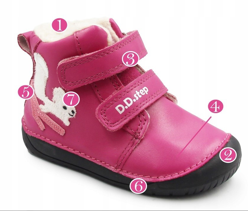 Dziewczęce buty zimowe ocieplane futerkiem syntetycznym, które ogrzewa stopy podczas chłodniejszych temperatur. Łączą one w sobie cechy takie jak elastyczność, niska waga oraz anatomiczny kształt, jednocześnie gwarantując optymalny komfort cieplny w chłodne dni. Ich innowacyjna budowa zapewnia swobodę i skuteczną ochronę nawet w wymagających warunkach zimowych. Podeszwa daje stopom pełną swobodę ruchów podczas chodzenia, czy też zginania. Szerszy kształt podeszwy zapewnia palcom więcej miejsca.