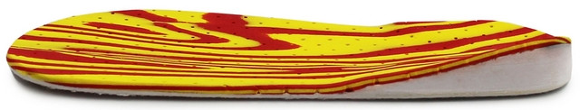 Wkładki "Correct S" posiadają wklejony specjalny klin korygujący, z podniesieniem po wewnętrznej stronie (1). Tak by zmusić stopy do korekcji, a co za tym idzie całe kończyny dolne do prawidłowej postawy ciała. Dodatkowo klin zapobiega pogłębianiu się wady.