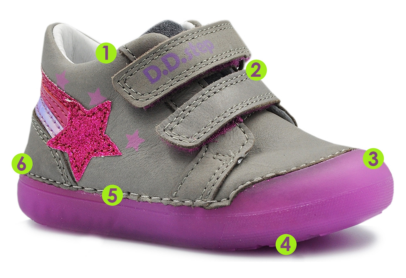 ✔ Buty posiadają usztywnione zapiętki, które ustabilizują stopy dziecka